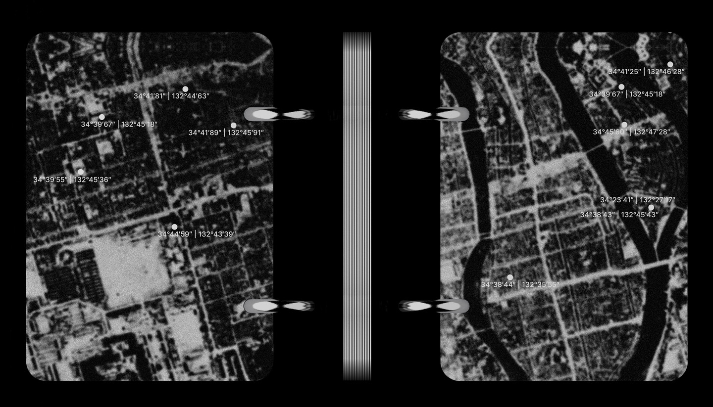 Иллюстрации на картах основаны на архивных фотографиях теней в Хиросиме.
