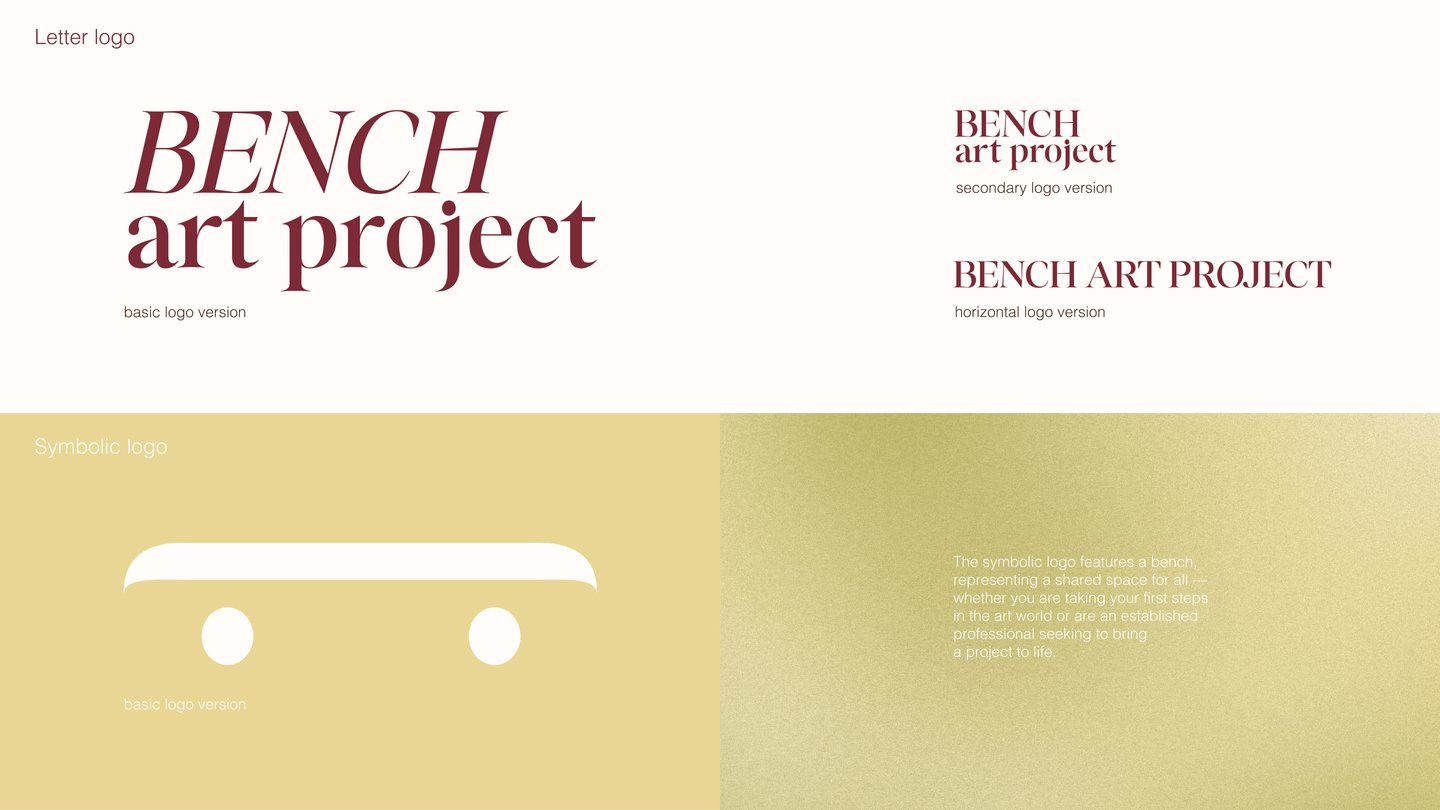 Визуальная концепция арт-проекта Bench представляет собой гармоничное сочетание элегантности, инклюзивности и современности, достигаемое благодаря минималистичному дизайну и изысканной цветовой палитре.