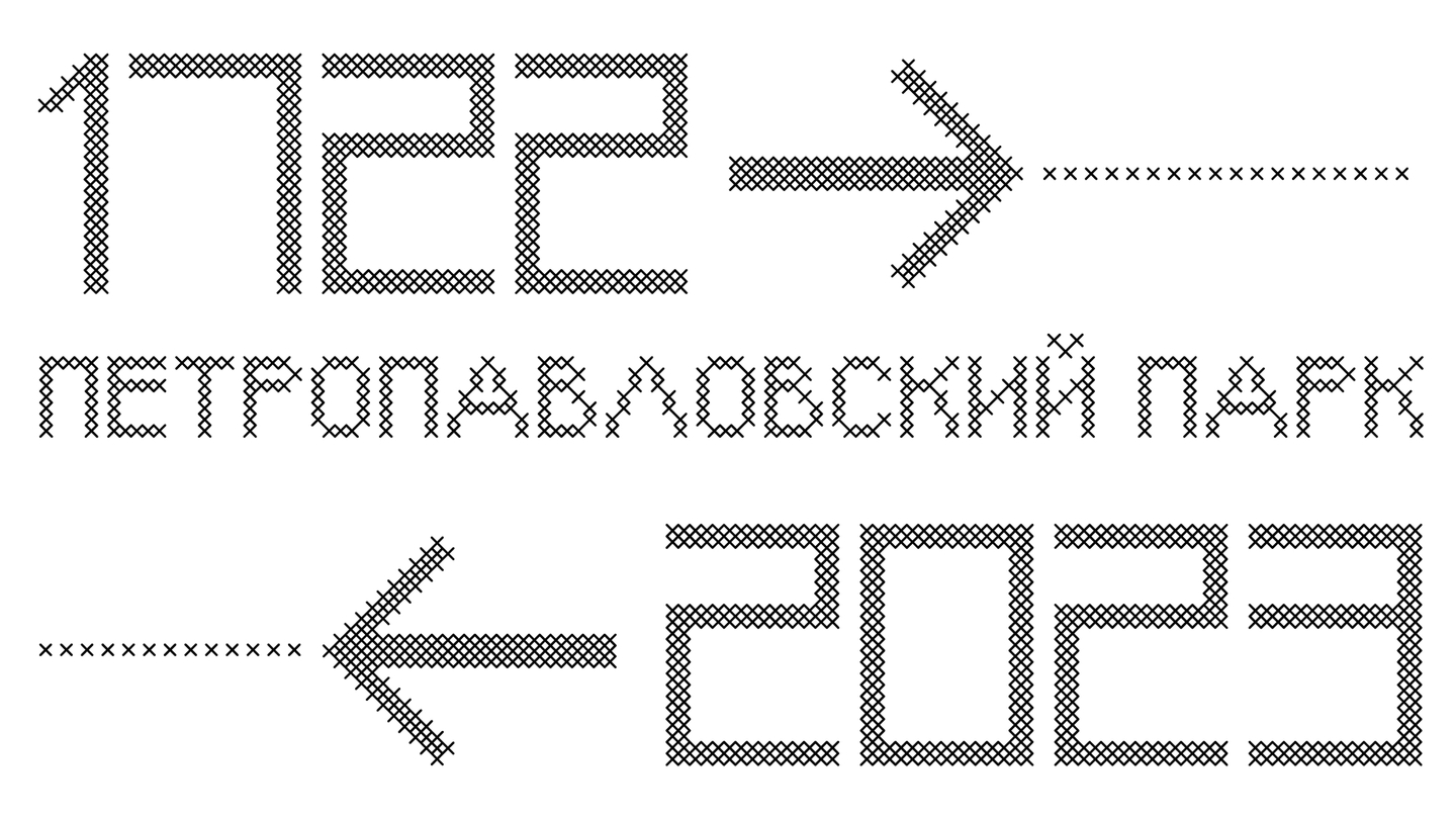 Айдентика парка обращается к прошлой функции комплекса — текстильному производству, а также к изделиям, изготавливаемым на Ярославской Большой Мануфактуре. Костяком графического языка является крестообразный стежок, а за основу модульной сетки взята канва для вышивания. Элементы фирменного стиля также отсылают к прошлому Петропавловского парка — колесу прядильного станка фабрики, системе регулярного голландского, часам храма Петра и Павла и т. д.