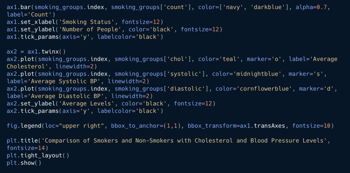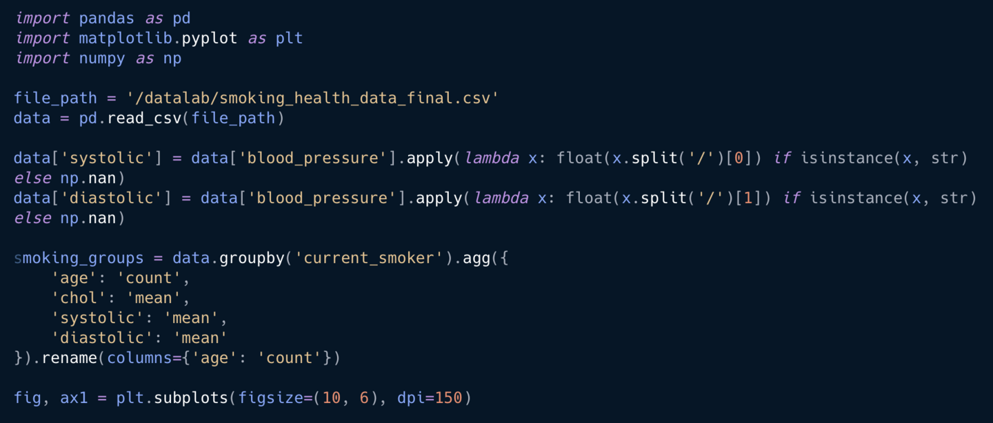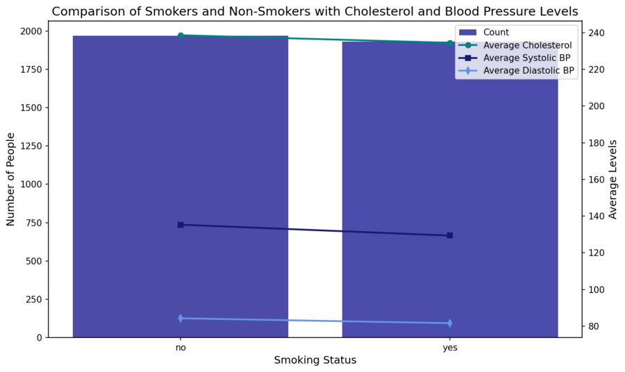Сначала я решила понять как влияет курение на уровень холестерина и артериального давления.