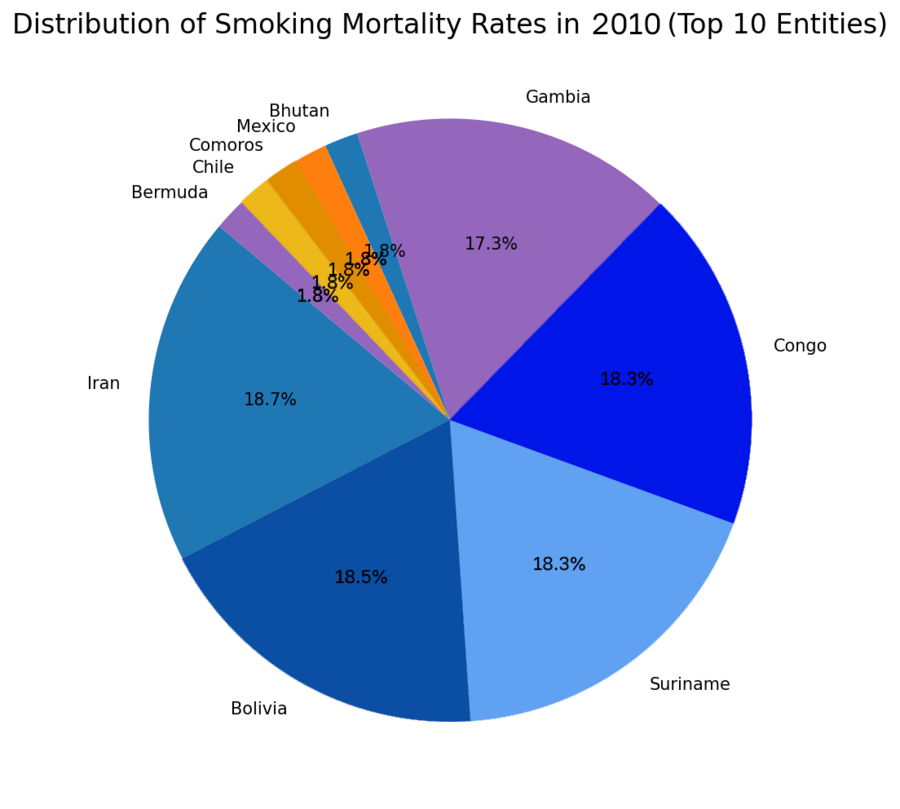 Потом мне стало интересно где больше всего умирают от курения, но к сожалению огромную базу датасет я нашла только за 2010 год.