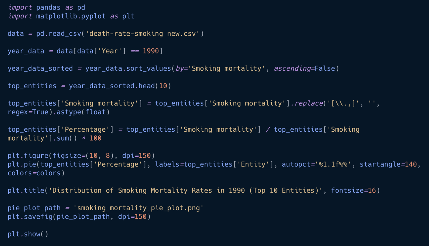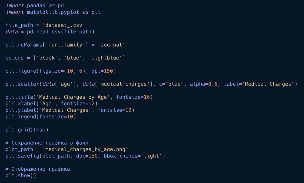 Для каждой диаграммы я импортировала необходимые мне библиотеки: matplotlib.pyplot и pandas. После чего добавляла csv файл и указывала к нему путь, задавала цвета и обозначала заголовки и метки осей, создавала код для диаграммы в зависимости от ее вида, после всех предыдущих действий улучшала качество изображения с помощью строки plt.savefig (plot_path, dpi=150, bbox_inches=’tight’) и выводила его с помощью plt.show ().