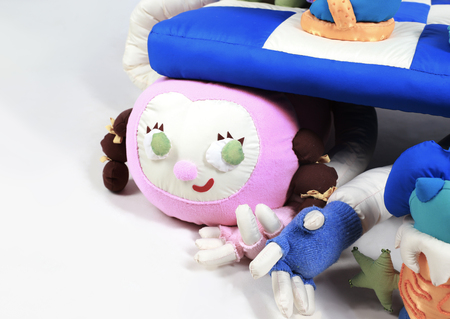 Шахматная игра представлена вверх тормашками. Таков уж замысел детского стиля: перевернуть всё с ног на голову или что ещё более забавное поставить на голову…ноги. А затем лихо закрутить сюжет: почему бы не примерить мамины сапожки или папины носочки? И вот сонный «Папа-Король» топает на работу, «Мама-Королева» гуляет с «Мамонтёнком», «Дядя-Ладья» шлёпает на рыбалку, а «Бабушка-Пешка» моет полы… А где же «Конёк Тыгыдык-Тыгыдык»?