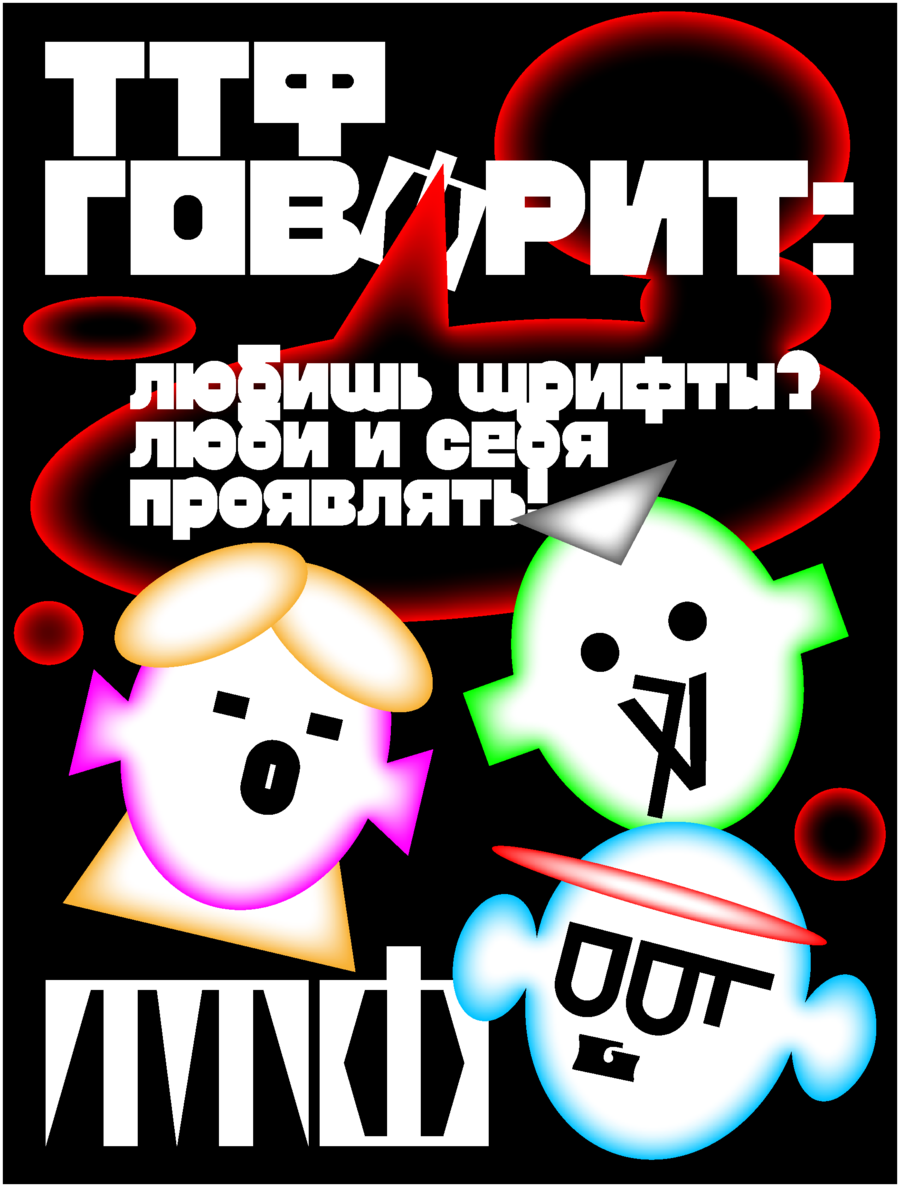 Trminal Type Foundry (ТТФ) — это шрифтовое подразделение брендингового агентства Terminal. ТТФ отличаются хулиганским подходом к кириллической акциденции и очень её любят. Кей-вижуал погружает нас в мир ТТФ: яркий, панковский, любящий нарушать правила, как и сами сотрудники ТТФ.