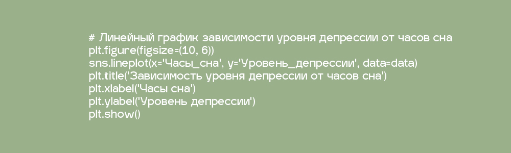 Линейные графики — для анализа зависимости уровня депрессии от часов сна.