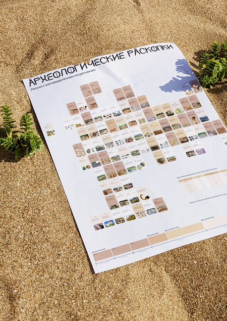 Инфографический постер познакомит с главными археологическими памятниками России — от древних стоянок каменного века до золотоордынских городищ, с распределением по всем регионам — от Камчатки до Дагестана.