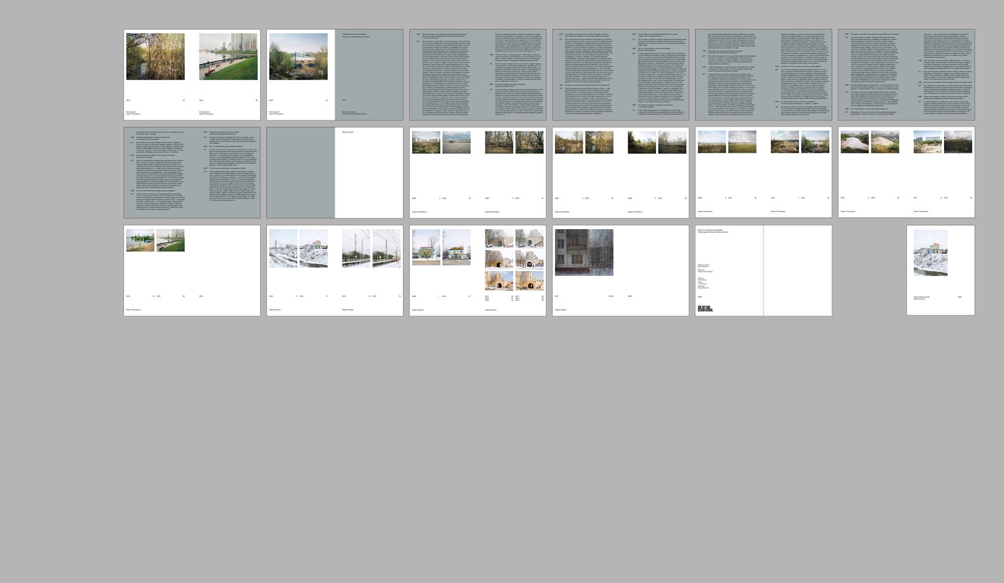 Интервью А. Гронского (2016 и 2024 гг.) прерывают фоторяд в хронологическом порядке, чтобы читатель мог проследить изменения не только в пейзажах, но и в мировоззрении фотографа.