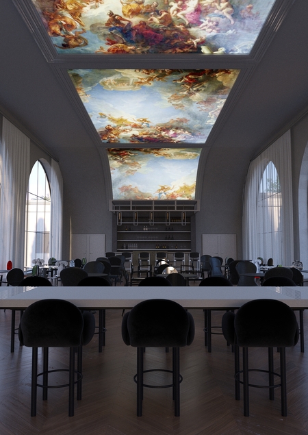Ресторан выполнен в стиле работ Одиль Декк. По большей части за основу был взят ее проект по вписыванию ресторана-фантома в историческое здание «Гранд-Опера», в Париже.