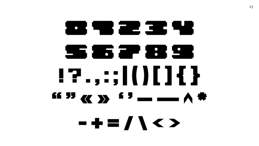 Благодаря тому, что шрифт моноширинный, все строки, набранные им, напоминают длинные ленты призовых билетов