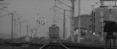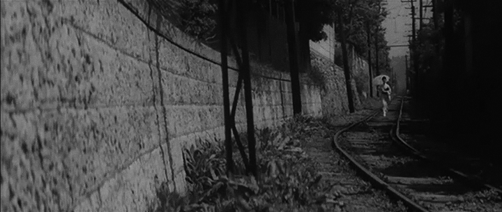 Сходные силуэты с неясной целью также присутствуют в «Женщине с озера»: ночная встреча Мияко с ее преследователем (илл. 19) и финальный образ Мияко на фоне железнодорожных путей (илл. 20), подчёркивающий многозначность концовки и неопределённость её будущего.