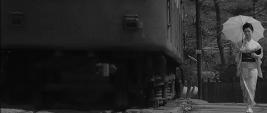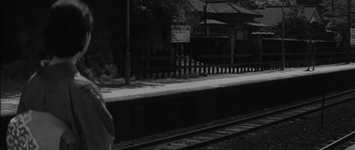В финале фильма Орико стоит на платформе, а напротив неё — любовник (илл. 44). Между ними проходит поезд (илл. 45), и заключительный кадр замирает на моменте, когда Орико собирается войти в вагон (илл. 46). Фильм оставляет зрителю разрешить внутренний конфликт героини, разрываемой между рациональностью и влечением. Её решение — сесть в поезд и продолжить роман или отказаться от него — остаётся за зрителем.