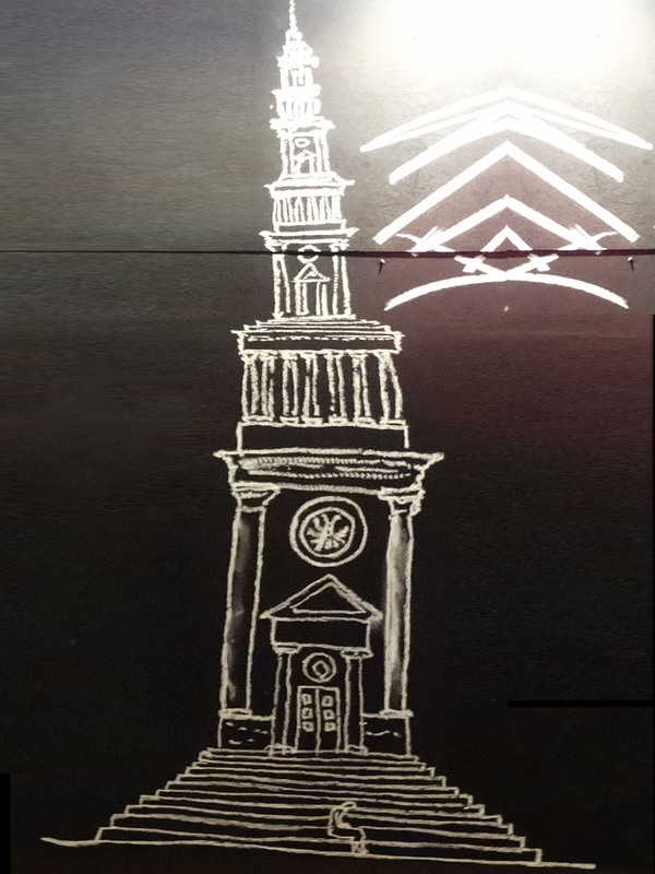 1)На следующей доске посетители оставят свои впечатления, зарисовки, быть может придёт юный маленький архитектор черканет свой цветочек, а потом через несколько лет вспомнит это. Поскольку забор, как известно, является временной конструкцией, и мел смывается со временем, предлагается делать фотографии по мере заполнения стен.