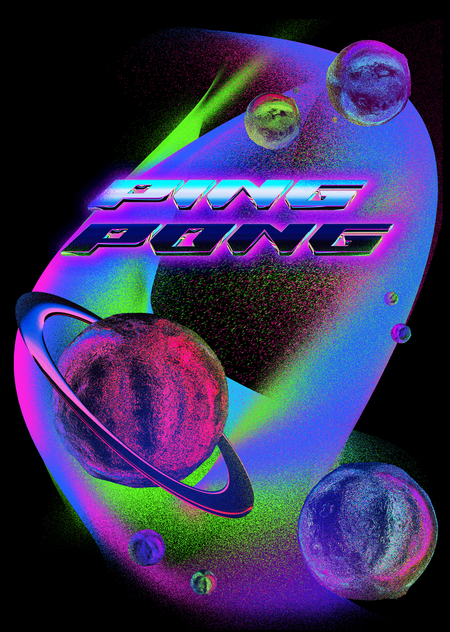 Вдохновленная vaporwave, хромом и неоном, яркая заставка с выразительной типографикой привлекательная для молодой целевой аудитории.