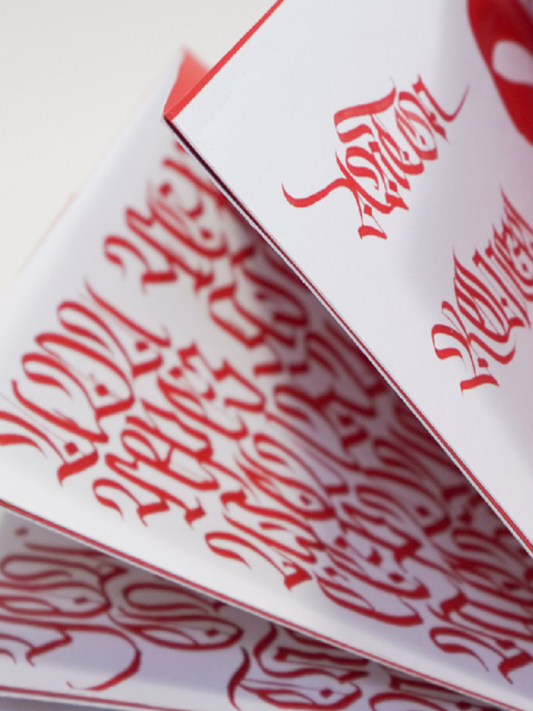Моя книга представляет собой композиции и фактуры, основанные на готическом письме. Главными инструментами стали ширококонечная кисть и плоское перо, которые помогали создавать разную толщину и жёсткость линий. За основу я взяла готические прописные латинские буквы, однако в процессе работы мне удалось вывести на их основе кириллические, поэтому в книге сочетаются прописные и строчные буквы двух разных языков.