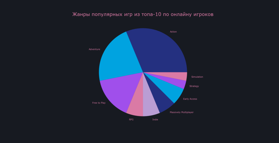 Диаграмма позволяет оценить распределение интересов среди игроков, выявляя, какие жанры привлекают наибольшее количество пользователей, что также может помочь в выборе жанра для создания игр или непосредственно для самого прохождения.