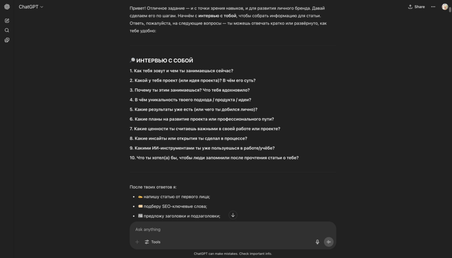 Так ChatGPT понял, что конкретно я хочу показать в своей статье и видео.