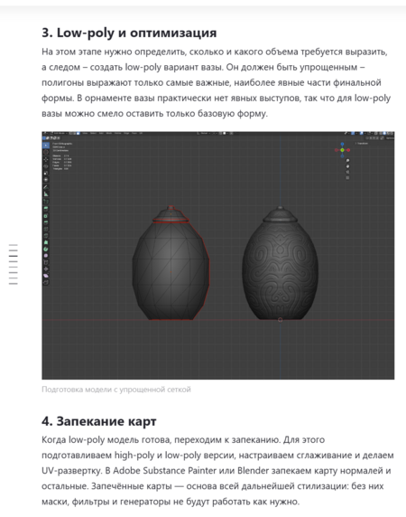 Для форматирования использовались промпты типа: «Переработай введение таким образом, чтобы оно было понятно начинающему 3D-художнику или текстурировщику.» «Немного упрости текст. Оставь первый абзац и отношение к вазе как вещи с характером.»