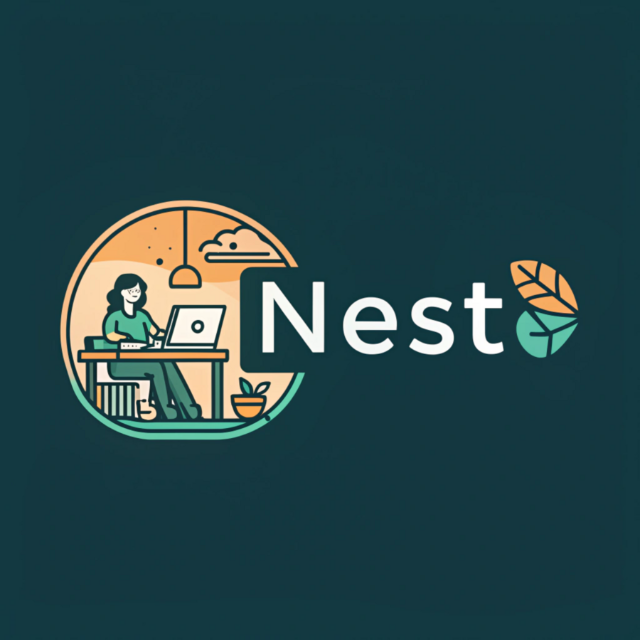 Промпт: Design a logo for a coworking space brand named ‘Nest, ’ reflecting comfort, creativity, and work