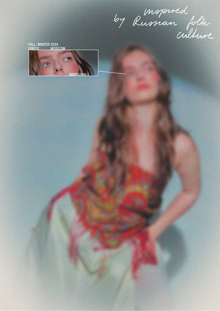 Изделия продемонстрированы на двух девушках, предвещая зимнюю коллекцию бренда FALL WINTER 2024.