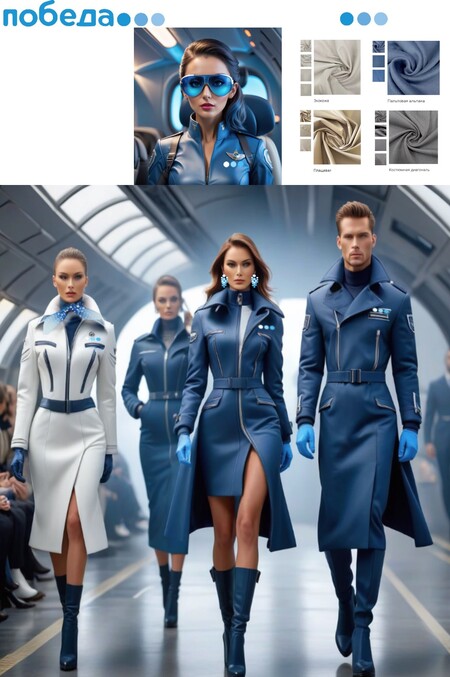 Работая над обновлённой формой, я стремилась не только создать удобную униформу, но и передать через неё международный статус авиакомпании «Победа», а ещё показать клиентам, что современная Россия — это стильная и открытая для других культур страна. Спасибо!