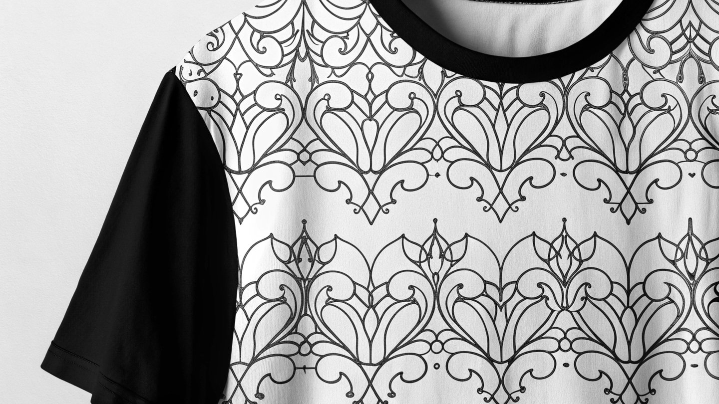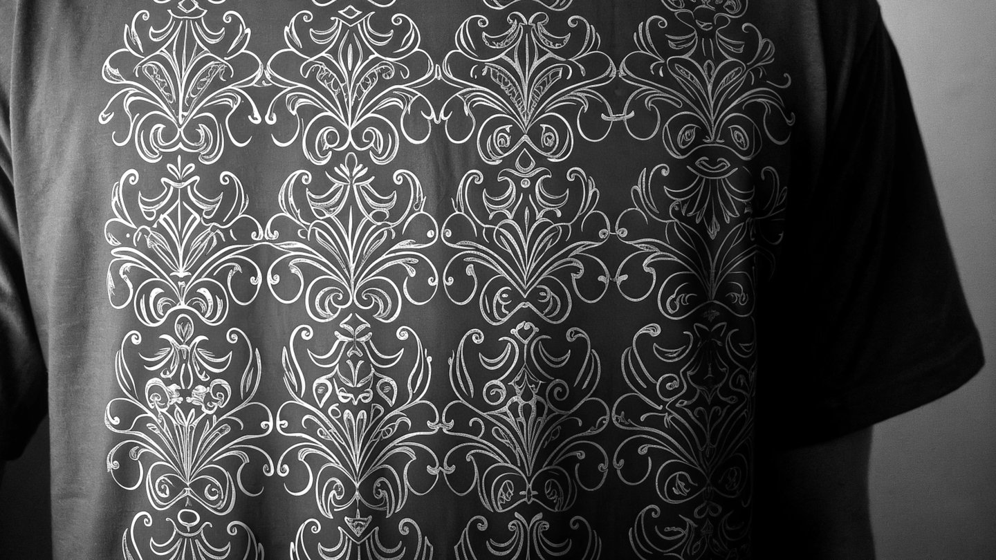 prompt: generate a t-shirt with a vector pattern of elements resembling filigree