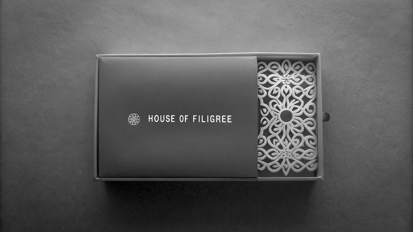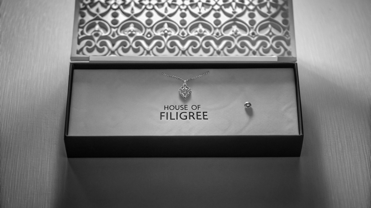 prompt: generate 3d visualization of packaging for filigree jewelry brand. brand name is «HOUSE OF FILIGREE»