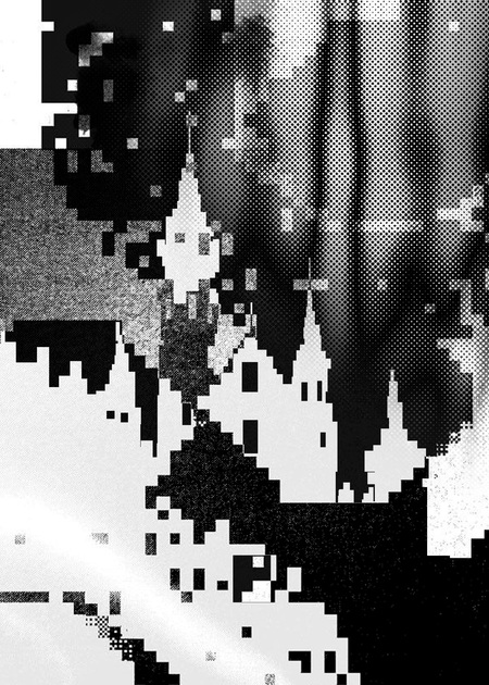 С приходом темноты готическая элегантность встречается с пиксельной аномалией, и реальность переходит в цифровое измерение, где старые камни замка обретают новое, таинственное изменение.