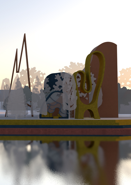 Основным источником вдохновения при создании площадки стали детские рисунки. Для них характерно искажение реальных пропорций, что приводит к выразительному преломлению перспективы и её «уплощению». Целью проекта стал перевод этой наивной пластики с листа в пространственно- объемную композицию.