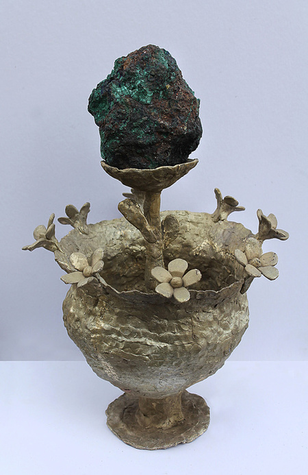 Чаши Евгения Антуфьева отсылают нас к традиции греческих пиров и создают визуальную рифму со статуей Сатира, как бы мимикрируя под греческий образ.