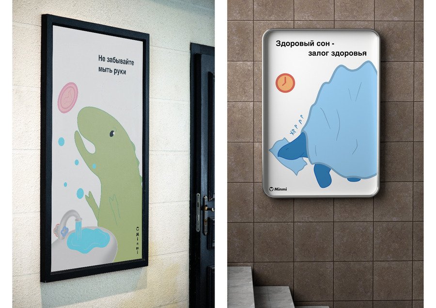 Также Chat GPT были созданы промты для генерации изображений, с небольшими правками. Задачей Chat GPT было подробно описать ту или иную вещь (пространство или мерч) на английском языке. Основным вводным для него было описание бренда Minmi: детский медицинский центр, где все делается для того, чтобы детям было комфортно проходить лечение, тематика — дружелюбные динозавры, минимализм и спокойные пастельные цвета.