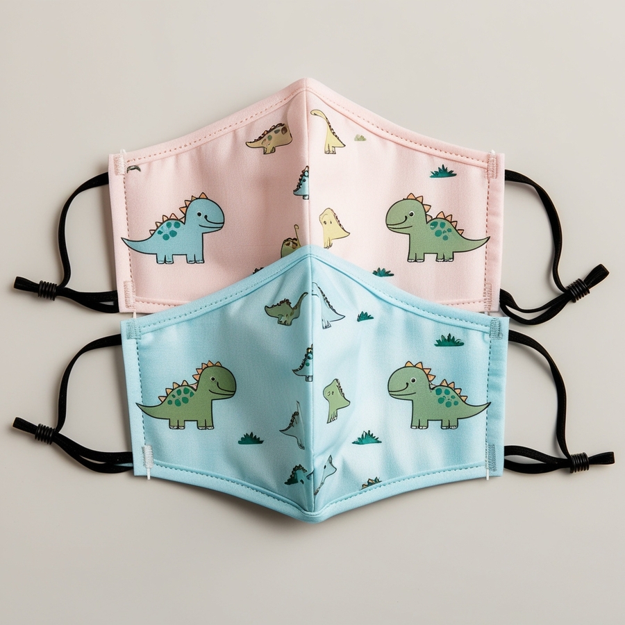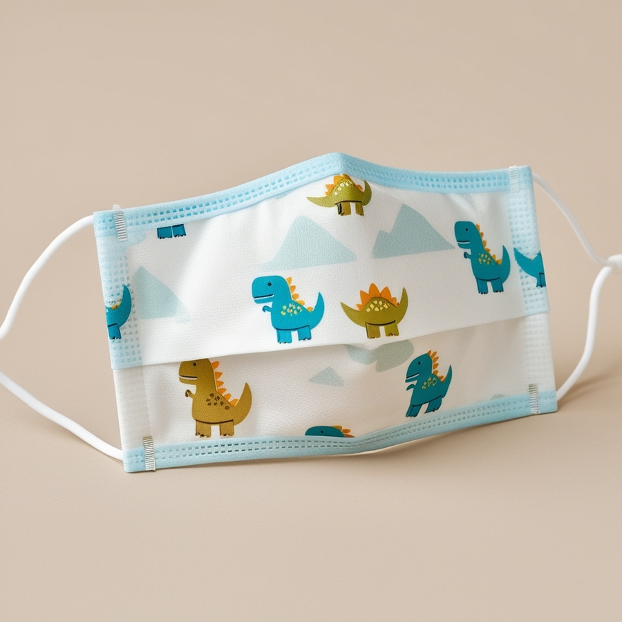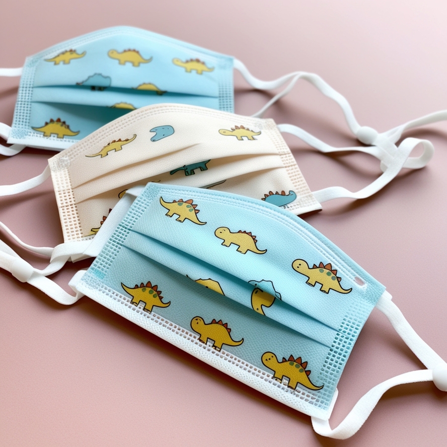 Промт: medical masks with cute dinosaur patterns on them. The masks should be made of a soft and breathable material, with adjustable straps for a secure fit. The dinosaur prints should be cheerful and inviting, making the masks less intimidating for young patients.