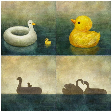 Я считаю, что генеративная модель успешной смогла уловить и передать стиль иллюстраций художника Pil Wha на получившихся изображениях. Сохранились мотивы работ с милыми маленькими созданиями и предметами, а также общая стилистика оформления освещения, цветовых палитр и эффект мягкости как небольшого бархатного размытия.