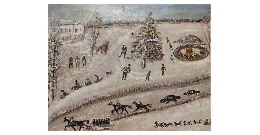 Здесь подчёркнута человечность русского наивного искусства, маленьким радостям посещаются целые полотна.
