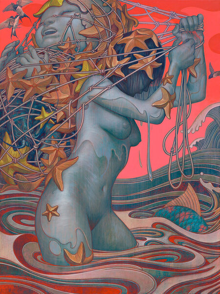 Джеймс Джин — современный американский художник, известный своими невероятно детализированными и реалистичными портретами, часто с элементами сюрреализма и фокусом на эмоциональном состоянии моделей. Его работы отличаются богатой цветовой палитрой, сложными текстурами и глубоким психологизмом.