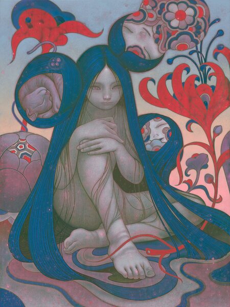 Меня заинтересовало, насколько нейросеть способна распознать и интерпретировать характерные особенности его стиля. Сможет ли она выявить традиционные восточные мотивы и сюжеты в его работах? И, что особенно важно, уловит ли она присущую Джину двойственность: сочетание мрачных, даже пугающих образов с тонкой, неуловимой мечтательностью и романтизмом?