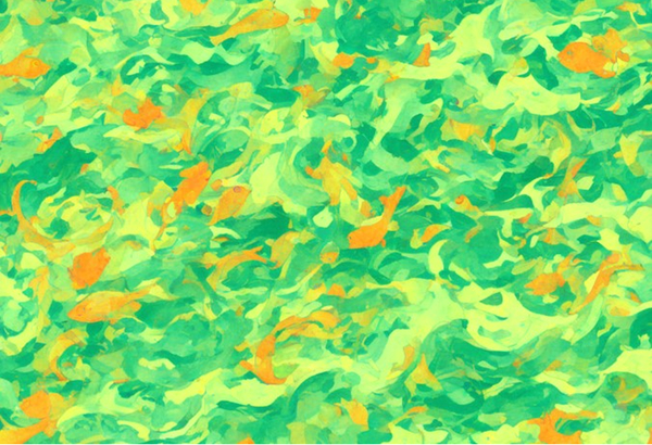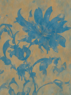 промт: 1 — painting of a blue flower, 2 — ocean waves with fish