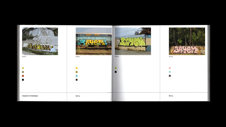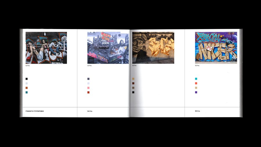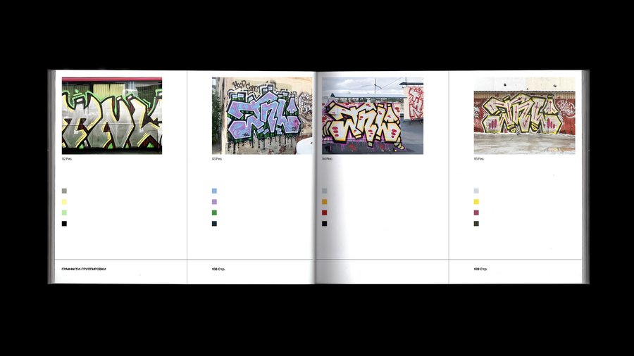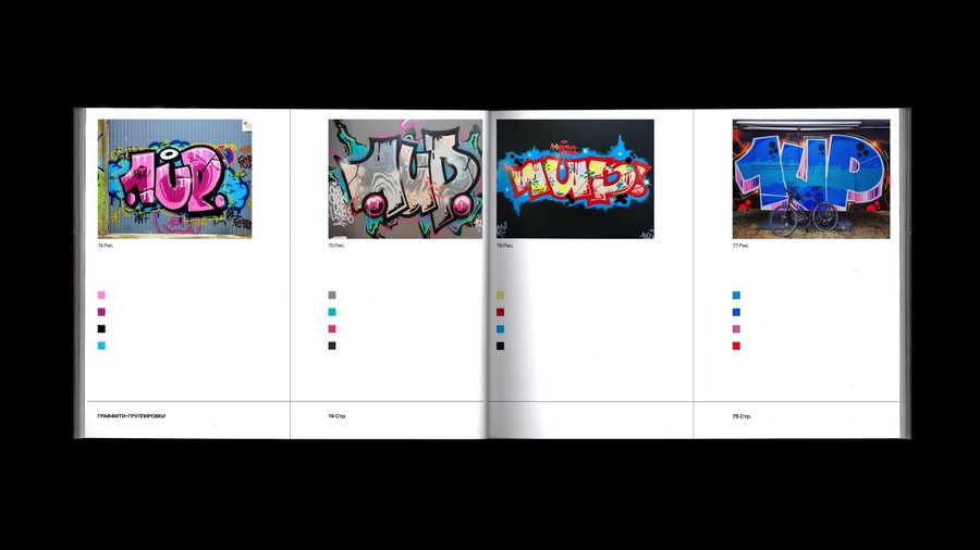 Визуальное исследование, посвященное анализу работ граффити-группировок. Гипотеза проекта заключается в мысли о том, что у каждой обособленной группировки есть свой визуальный код, при этом внутри одной команды работы могут отличаться друг от друга цветами, шрифтами и характером написания.