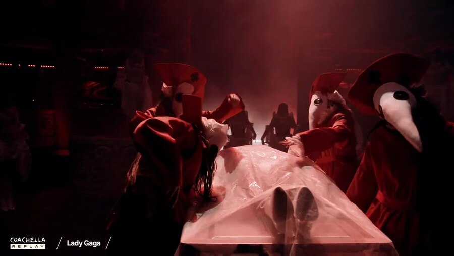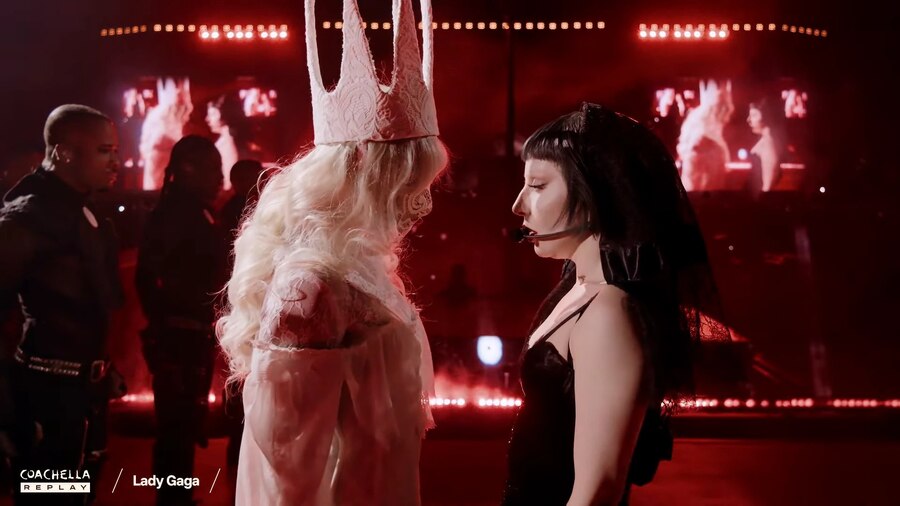 Однако до основного тура прошло еще несколько важных событий рекламной кампании. Во-первых, Леди Гага стала хэдлайнером музыкального фестиваля Coachella 2025 c программой The Art of Personal Chaos, которая стала настоящей театральной психологической драмой из 4 актов.
