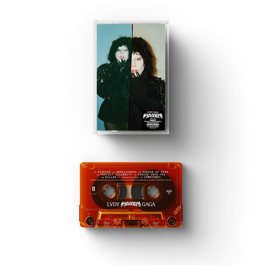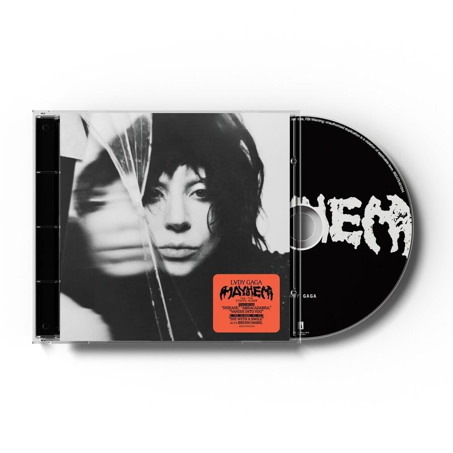 К выходу альбома был выпущен официальный мерч в формате виниловых пластинок, компакт-дисков и аудиокассет, что стало важным элементом маркетинговой кампании. Использование разных физических носителей позволило охватить широкую аудиторию — от коллекционеров винила до поклонников классических форматов и ностальгирующих по эпохе кассет. Такой подход усилил эмоциональную связь с фанатами, создавая ощущение эксклюзивности и тактильного взаимодействия с музыкой, что часто теряется в цифровую эпоху. Визуально мерч выдержан в неизменной готической эстетике, но на любой вкус: помимо темных и мрачных цветовых решений встречаются яркие оттенки синего, фисташкового и розового, которые неожиданны для классического стиля MAYHEM. Композиция обложек и дизайна носителей построена на динамичных геометрических формах и асимметрии, что отражает хаотичную и экспрессивную природу музыки Гаги.