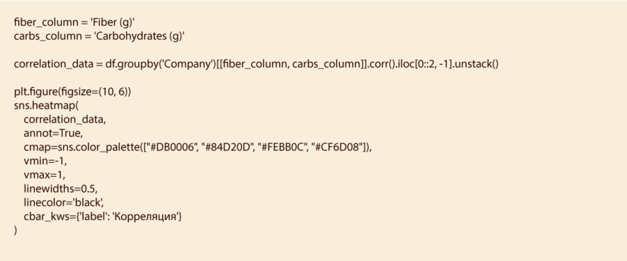 А с тепловой картой получилось оценить силу связи двух пищевых компонентов.
