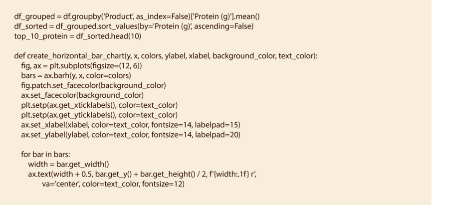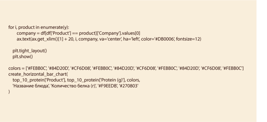 Столбчатых диаграмм — сравнить количество/числовые значения показателей блюд.