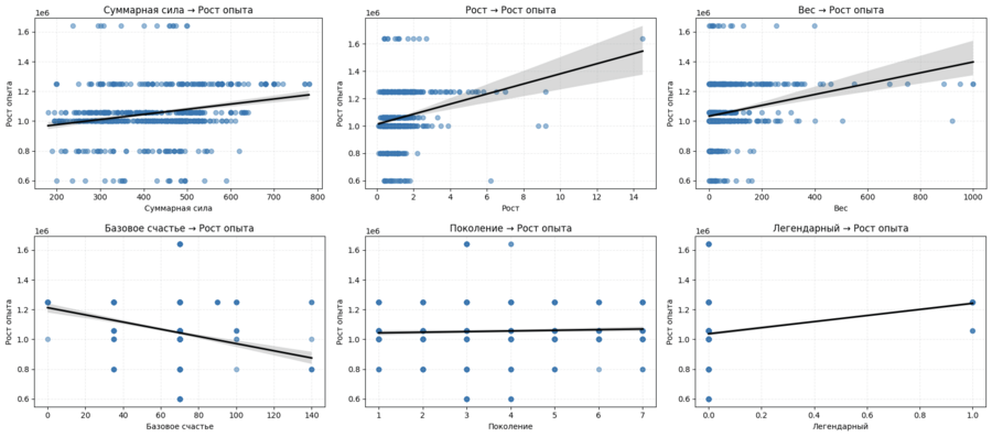 Рост и вес частично коррелируют с боевыми характеристиками: крупные покемоны действительно чаще обладают большим запасом HP и атакой, но не всегда превосходят в скорости или спец. защите.