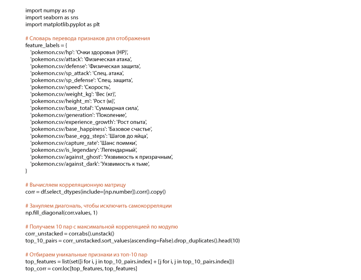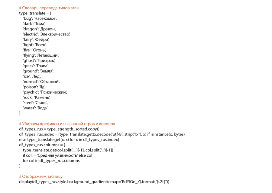 Что такое against_* признаки? Это численные значения, показывающие, во сколько раз покемон данного типа получает урон от конкретного типа атаки. Например: against_fire = 2.0 → покемон получает в 2 раза больше урона от огня against_fairy = 0.5 → в 2 раза меньше от фейри