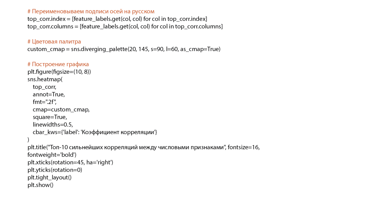 Топ-10 коррелирующих переменных