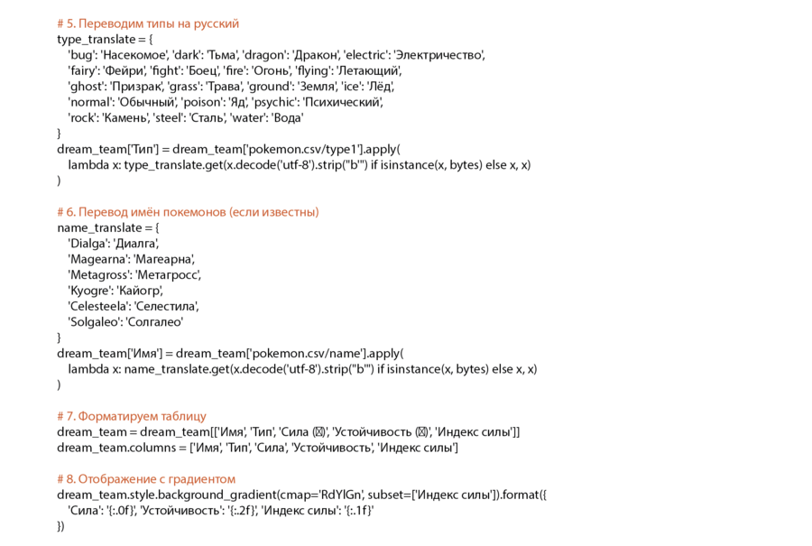 Можно ли собрать «Dream Team» из 6 покемонов, которые наносят максимум урона и устойчивы к другим командам? — Да, можно! Ниже — идеальная команда по метрике «сила / уязвимость»: