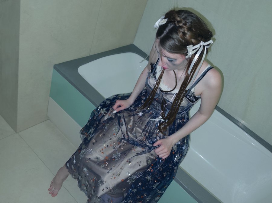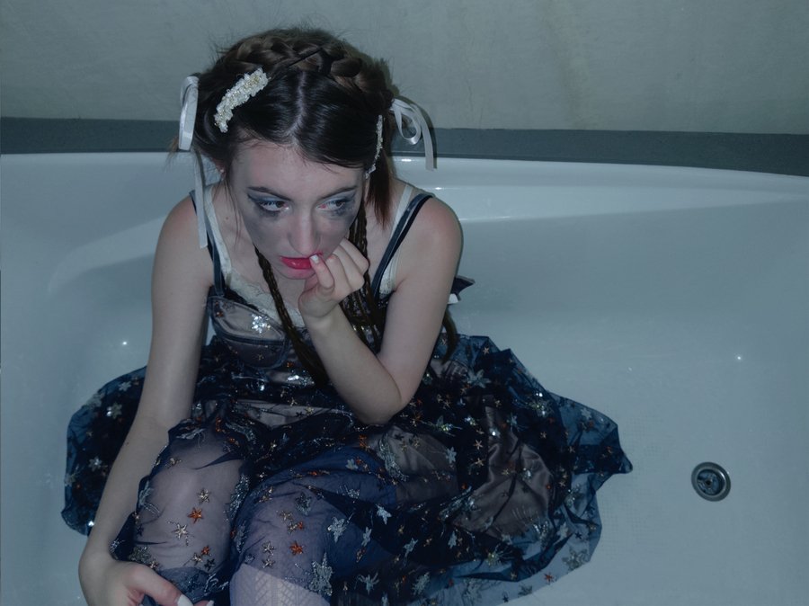 Героиня следует порыву быть запоминающейся, потому что в современном мире быть обычным значит быть непривлекательным. Однако даже платье с блесками не может подарить ей чувство собственной красоты.