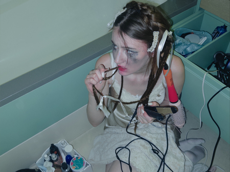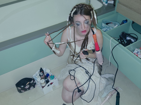 Потребление не делает ее прекрасной, а идеал социальных сетей недостижим. Осознание этого бросает героиню в истерическое состояние: она красится и смывает макияж, делает прическу и тут же рвет на себе волосы.