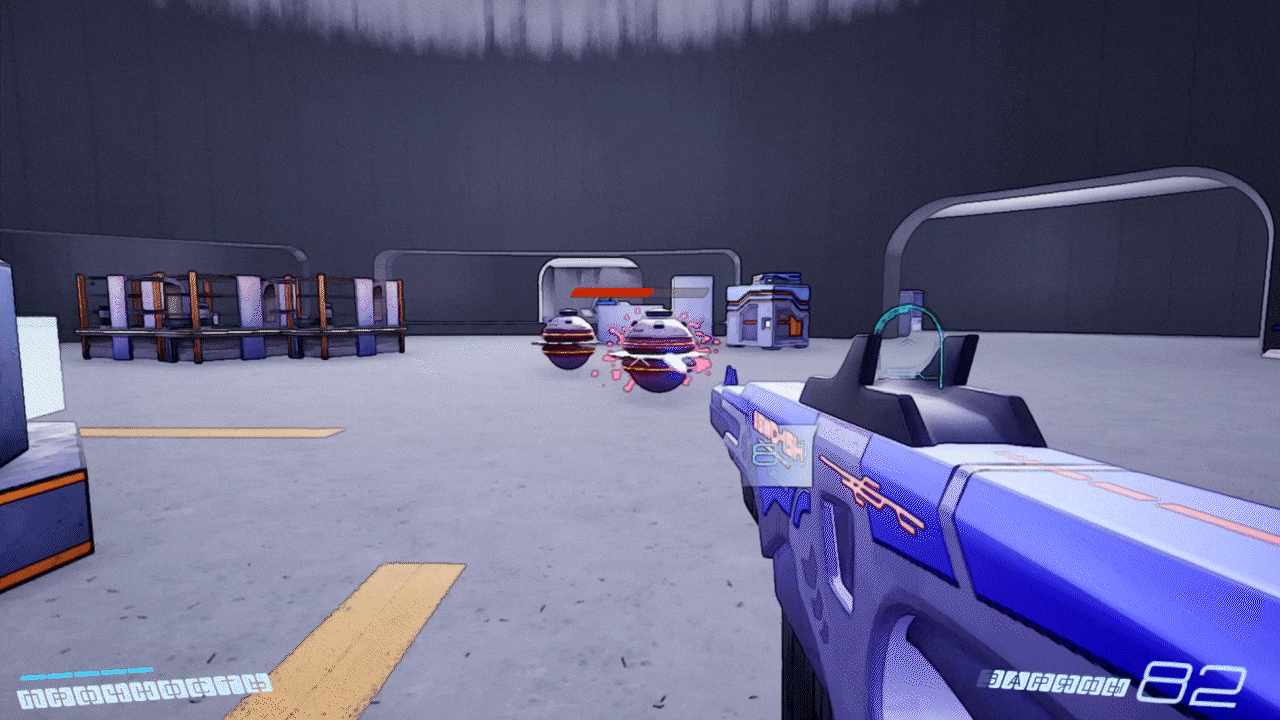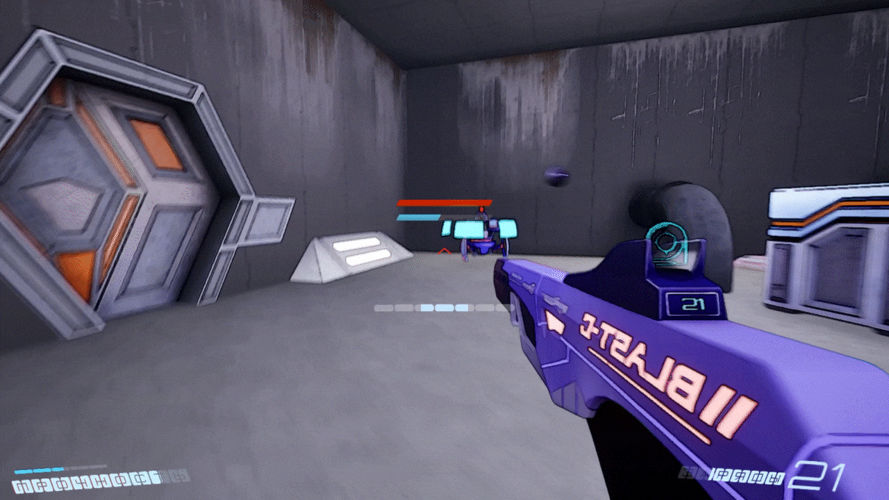 Летающие боты преследуют игрока и расстреливают лазерными очередями из двух пушек.