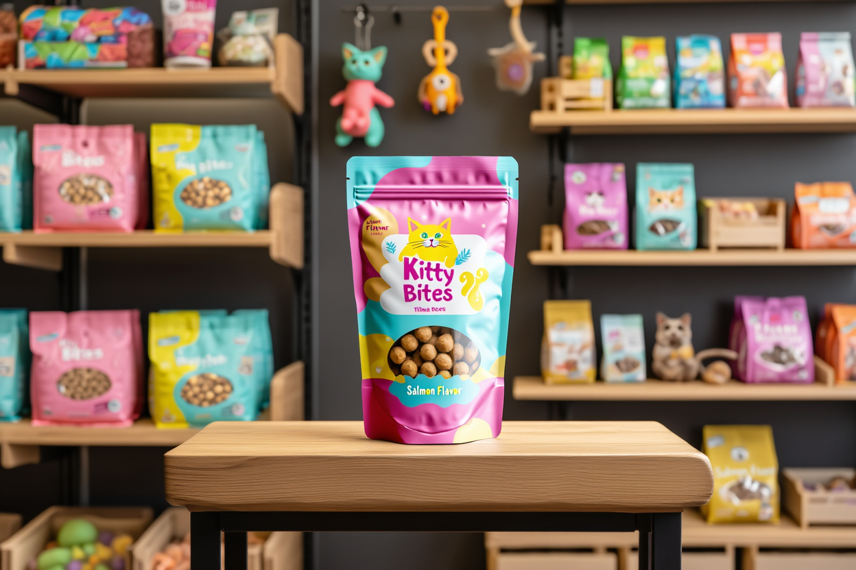 Promt: Colorful collection of soft fluffy cat toys in coordinating pastel colors
