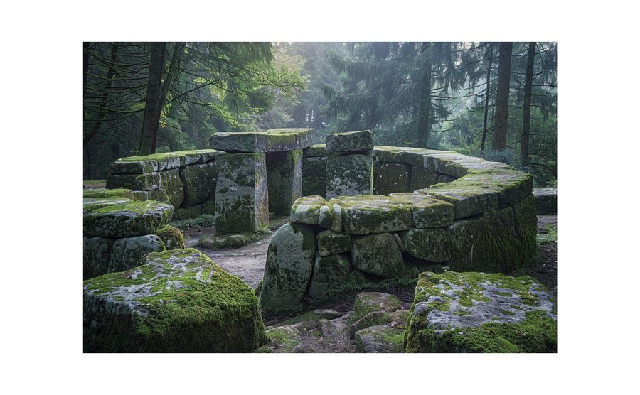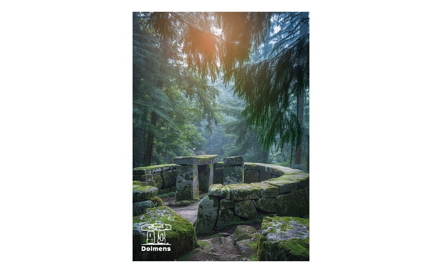 Используемый промт: The ruins of ancient dolmens, with stone walls and square terraces for meditation and relaxation, stand out against an open backdrop of trees. The scene is captured in high-definition photographs using Canon cameras, showing its vastness and grandeur., shot on a Canon EOS-5D Mark III camera. --ar 4:3